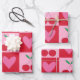 Chequered Cherries with Pink Hearts Pattern Wrapping Paper Sheet