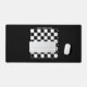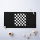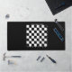 Chequered chess board custom colour desk mat. Handy gift idea for chess player, school, teacher, instructor, coach, friend, kids, co worker, boss, etc. Customisable background colour. Add your own text. Unique Birthday presents for him or her. Also good for checkers and other games. Black and white chequered design with 64 squares. Includes numbers and letters. Chess pieces not included. Cool novelty game display for home, club, office, event, wedding, shop, store, school and more.