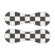 This design features a black-and-white chequered flag that is typically used in motor racing to indicate the finish. The flag is often associated with the winner of a race, since they are the first to drive past the chequered flag. The pattern can also be seen as influenced by a chequerboard, which is used to play strategy games such as chess.
