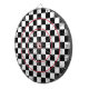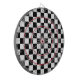 The flag of a winner. Sharp black and white chequered pattern with red circles.