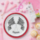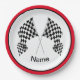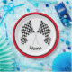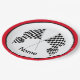 Chequered Flag Design Paper Party Plate with customisable text and outer ring colour.