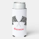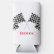 Chequered Flags Design Seltzer Can Cooler with customisable text and background colour.