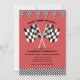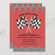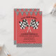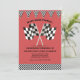 Black and white chequered flags, against a red background, create this handsome racing invitation that perfect for all ages. (<a href='https://www.freepik.com/free-vector/chequered-flag-background_2638217.htm'>Designed by Freepik</a>). <br/><br/>The card is easy to customise with your wording, font and font colour.<br/><br/>Not exactly what you're looking for? All our products can be custom designed to meet your needs at no extra charge.<br/><br/>Simply contact us at askcottonlamb@gmail.com.<br/><br/>Coordinating products available: Just ask us!