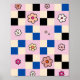 Chequered Flower Colourful Check Pattern Pink Blue Poster