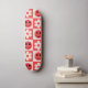 This is cute chequered white flowers with red happy faces on checkerboards. It's cute skateboard for teenage girls