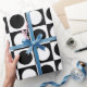 Chequered Geometric White Black Circle Polka Dots Wrapping Paper