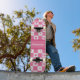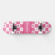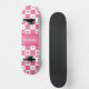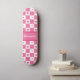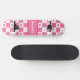 Chequered Heart Squares Pattern Pink and Whtie Skateboard