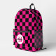 Chequered hot pink black geometric retro Monogram Printed Backpack