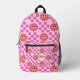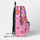 Chequered Hot Pink Smiling Flowers Custom Name Printed Backpack