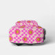 This is custom name personalised backpack for girls featuring cute chequered happy smiling flowers pattern in hot pink with little sqaures.