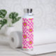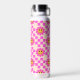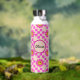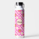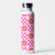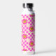Chequered Hot Pink Smiling Flowers Custom Name Water Bottle