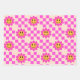 Chequered Hot Pink Smiling Flowers with squares Wrapping Paper Sheet