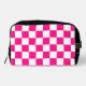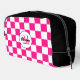 Chequered Hot pink white geometric retro Monogram Dopp Kit