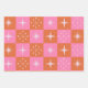 Chequered Mid Century Pink and Orange Starbursts Wrapping Paper Sheet