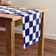 Give your table a new look with a stylish table runner featuring a classic navy and white chequered pattern. The design is made of rows of alternating white and dark blue squares. Feel free to customise the product to make it your own.