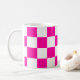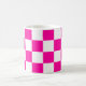 Abstract digital art of Neon Pink and white squares in a chequered formation.