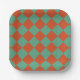 Chequered Orange & Green Retro Chic Birthday Party Paper Plate
