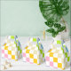 Abstract digital art of white and pastel coloured squares in a chequered formation.