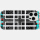Floral/Star Motifs: The small white designs within some black squares resemble flowers or stars, introducing a subtle organic element that contrasts with the geometric focus.