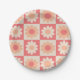 Chequered Peach Fuzz Retro Flowers Pattern Paper Plate