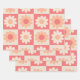Chequered Peach Fuzz Retro Flowers Pattern Wrapping Paper Sheet