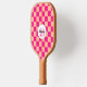 Chequered peach hot pink geometric retro Monogram Pickleball Paddle