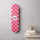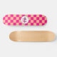 Chequered peach hot pink geometric retro Monogram Skateboard