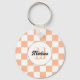 Chequered peach white geometric retro Monogram keychain. Accessories gift for her. Cool retro chequered geometric square pattern. Vintage tile peach white modern chequered. Personalise with your custom initial and name.