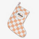 Chequered peach white geometric retro Monogram Small Christmas Stocking