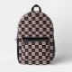 Chequered Pink and Black Butterfly Pattern Printed Backpack