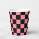 Abstract digital art of pink and black squares in a chequered formation.With the ability to change the white squares by changing the background colour to match the white squares.