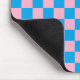 Abstract digital art of pink and turquoise squares in a chequered formation.