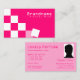 Chequered Pink and White Modern with Photo Stylish Business Card