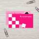 Make a lasting impression with this cool and modern business card design featuring pink and white chequered pattern and the backgrounds are girly pink and light pink.