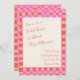 Celebrate in bold, retro style with this vibrant bridal shower invitation featuring a playful pink and orange chequerboard border. The quirky handwritten script adds personality and warmth, while the asymmetrical layout keeps things modern and fun.