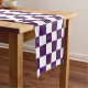 Give your table a new look with a stylish table runner featuring a bold regal purple and white chequered pattern. The design is made of rows of alternating white and dark purple squares. Feel free to customise the product to make it your own.
