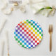 Abstract digital art of white and rainbow coloured squares in a chequered formation.