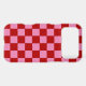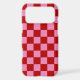 Abstract digital art of red and hot pink squares in a chequered formation. With the ability to change the pink squares by changing the background colour to match the red squares.