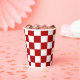 Abstract digital art of red and white squares in a chequered formation. With the ability to change the white squares by changing the background colour to match the red squares.