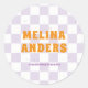 Textured chequered pattern retro labels in lavender and amber colours for your business.