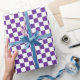 Abstract digital art of royal purple and white squares in a chequered formation.