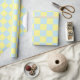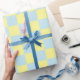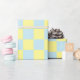 Abstract digital art of pastel blue and yellow squares in a chequered formation.