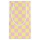 Abstract digital art of pastel pink and yellow squares in a chequered formation.