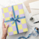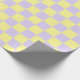 Abstract digital art of pastel yellow and purple squares in a chequered formation.