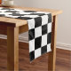 Black and White Chequered Dining Table Runners home decor. Cool retro chequered geometric square pattern. Vintage tile Black and White modern chequered.
