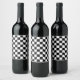 Chequered squares black and white geometric retro wine label