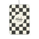 Chequered squares black and white retro Monogram Car air freshener. Chequered squares geometric retro pattern Interior Car Accessories - gift for all. Cool retro chequered geometric square pattern. Vintage tile black white modern chequered. Personalise with your custom initial and name.