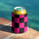 Chequered squares hot pink black geometric retro pattern Can Cooler gift for her. Cool retro chequered geometric square pattern. Vintage tile black and hot pink modern chequered.