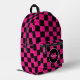 Chequered squares hot pink black geometry Monogram Printed Backpack. Cool fashion accessory bag for her. Cool retro chequered geometric square pattern. Vintage tile black and hot pink modern chequered. Create a unique and personalised backpack with a custom touch! Modern monogram with your initial and your name for that extra personal flair.