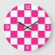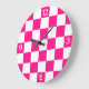 Chequered squares hot pink white geometric retro pattern Home Decor Wall Clocks gift for her. Cool retro chequered geometric square pattern. Vintage tile white and hot pink modern chequered.